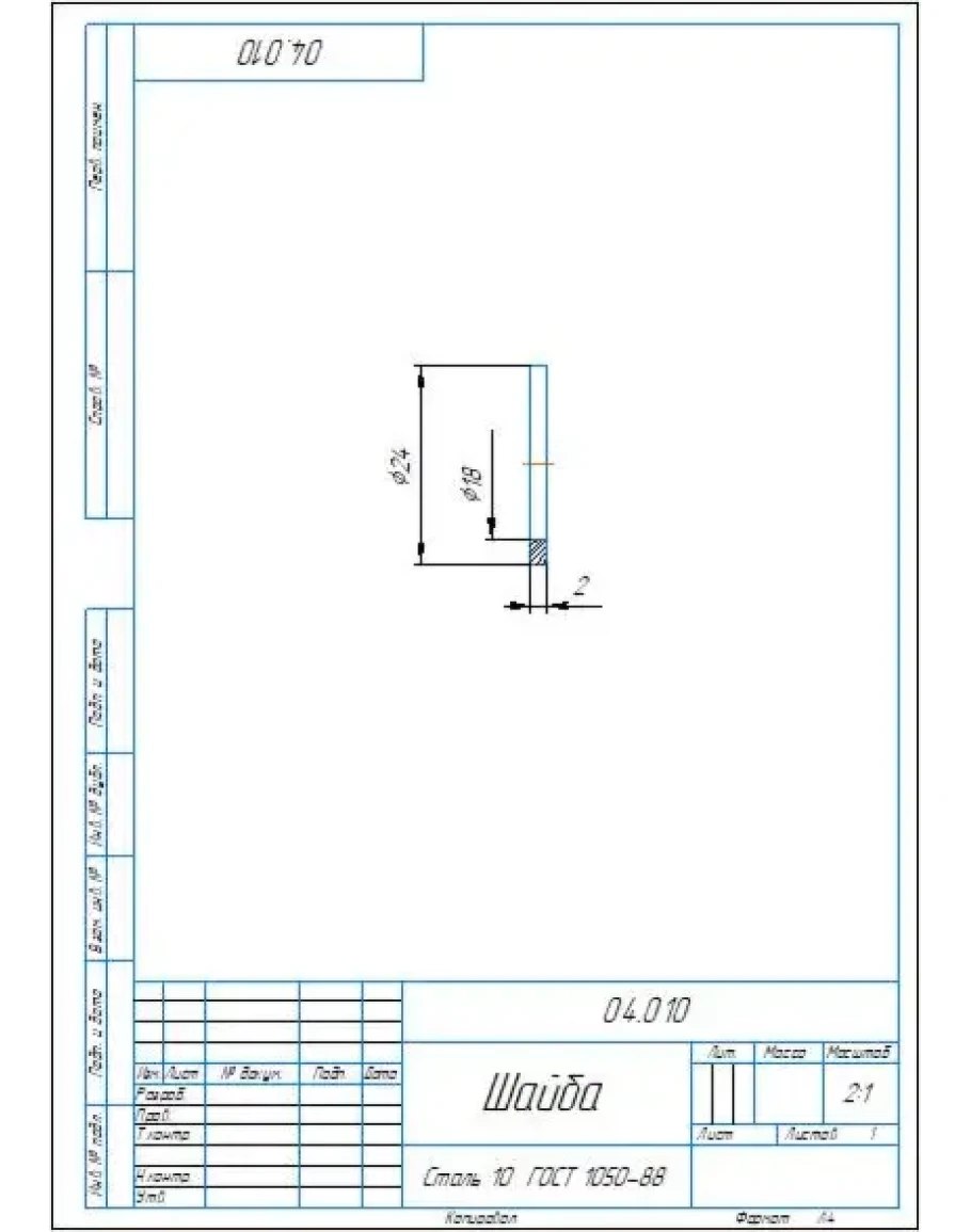 Рабочий чертеж и 3D модель детали шайба 04.010 из сборки 04.000 гидроцилиндр рабочий тормозной из сборника по деталированию Аксарина. Чертеж и модель выполнены в программе Компас 3D