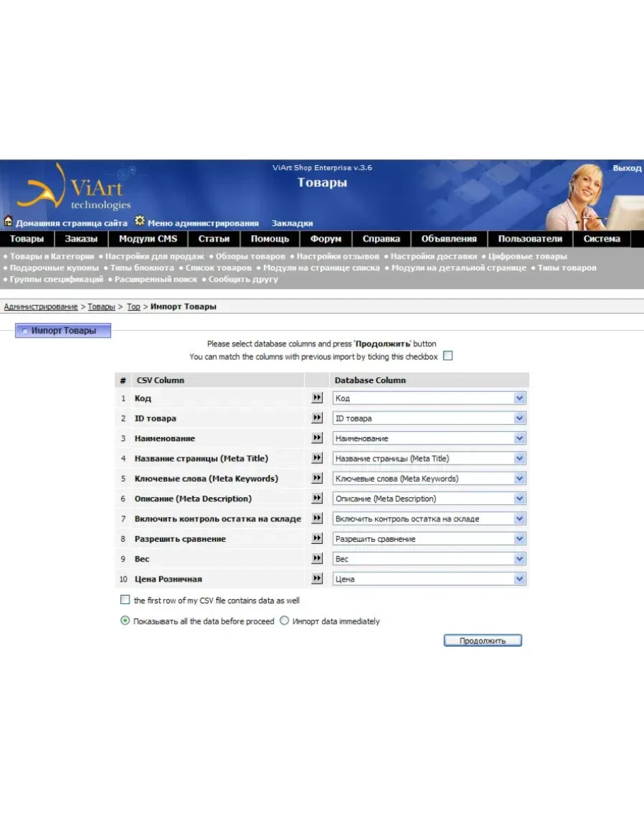 конфигурация 1С: Предприятие - Управление торговлей для Украины 2.3 -> Скрипт интернет-магазина ViArt PHP Shoping cart 3.6.