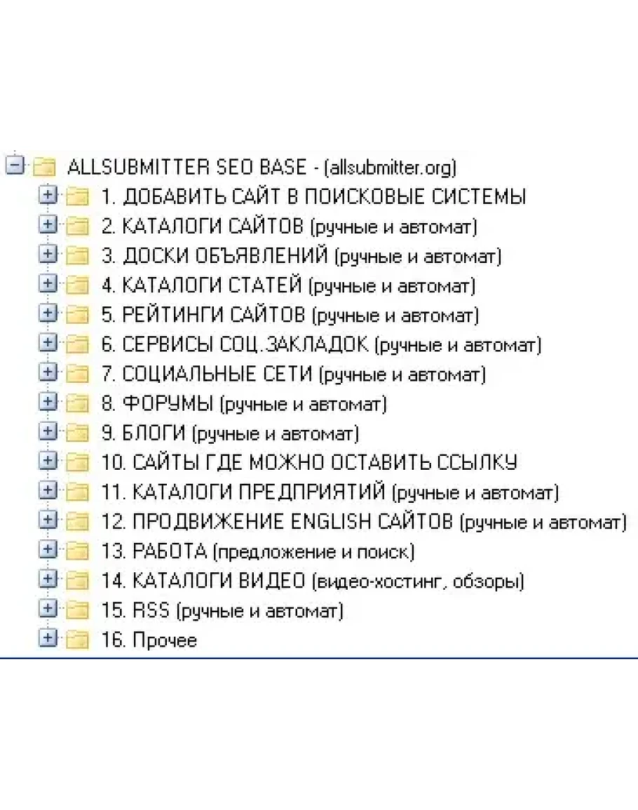 После оплаты вы получите архив с файлом самой популярной базы каталогов для Allsubmitter. База платная и в интернете её нет в свободном доступе.