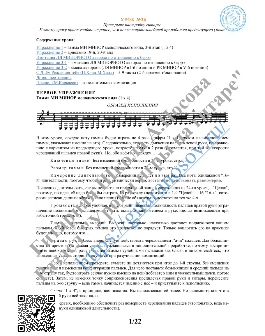 #Упражнение 1– гамма МИ МИНОР мелод. вид, 3-й этап (1 х 4). #Упражнение 2 – арпеджио, вид 19-20. #Упражнение 3-1 – имитация Am аккорда по отношению к баррэ. #Упражнение 3-2 – смена аккордов (Am в I-й поз. и Dm в V-й поз.). #Композиция – "С Днём Рождения тебя" (П.Хилл-М.Хилл)"– целиком. #Дополнительная композиция – "Прелюд" (М.Каркасси).