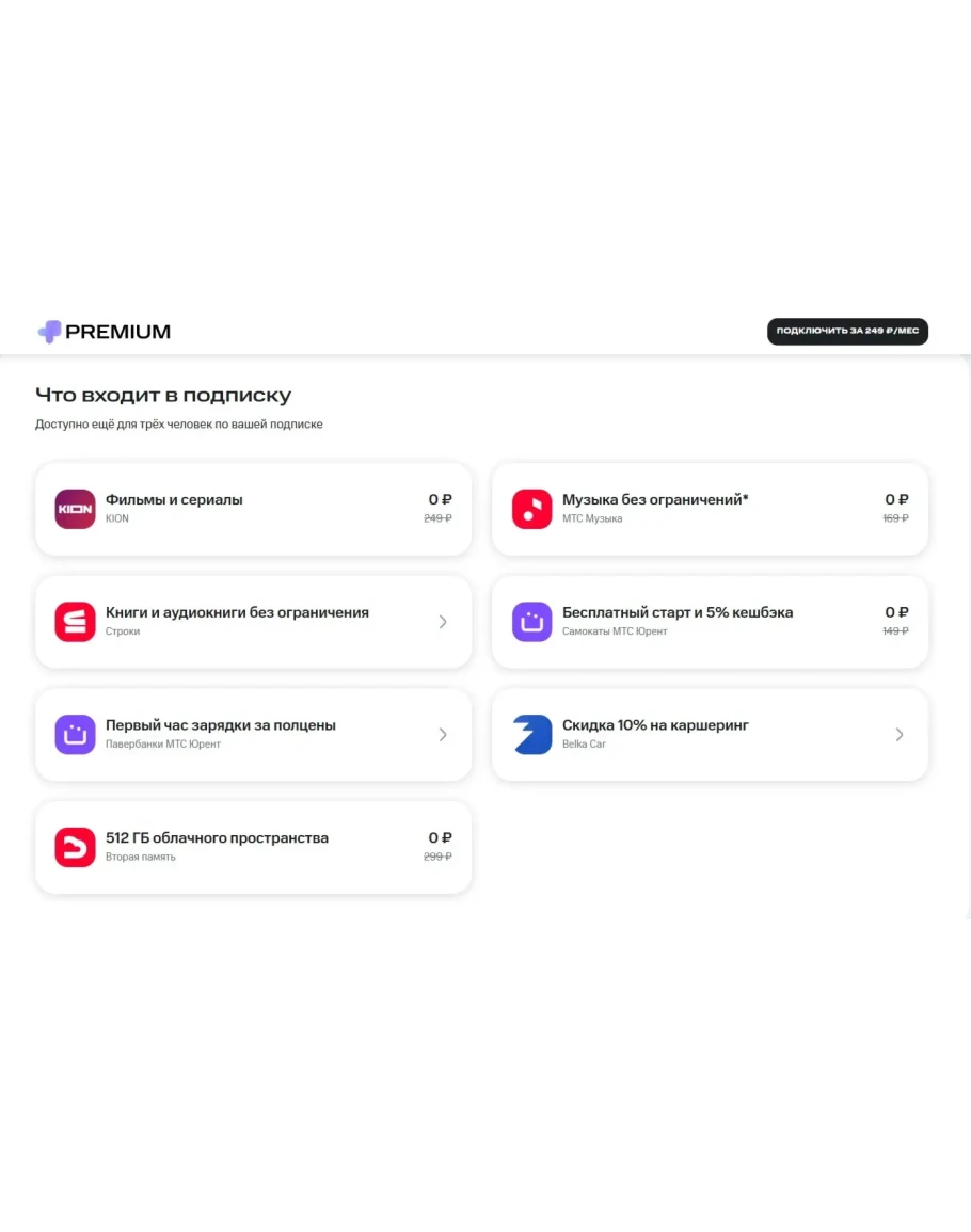 Подписка МТС Premium Кино, музыка, защита от спама и другие преимущества ,