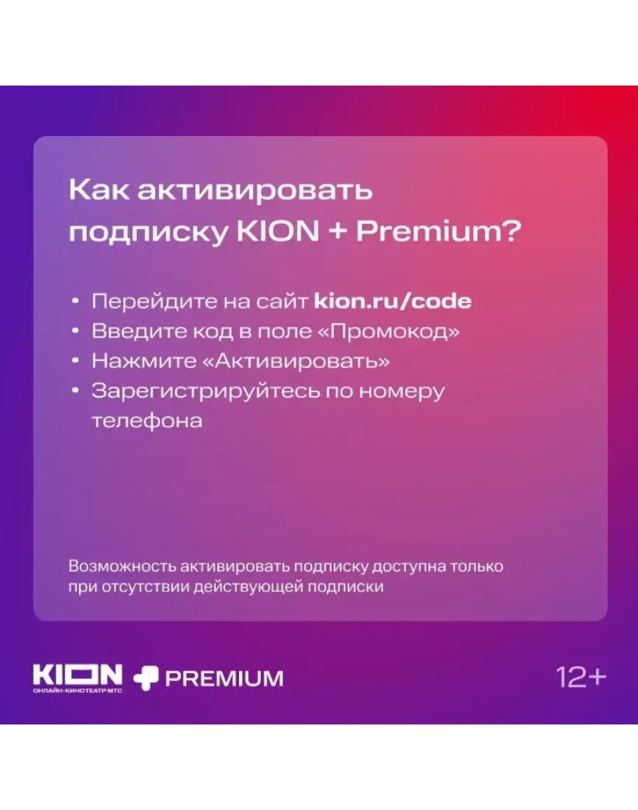 Это по сути промокод на Бесплатный пробный период KION (30 дней для новых пользователей) .