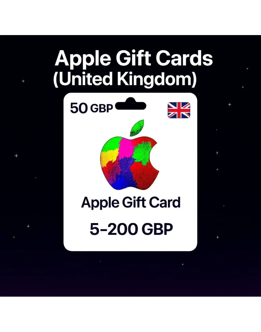 Подарочную карту Apple номиналом от 5 до 200 GBP (Великобритания) — выберите нужную сумму при покупке.