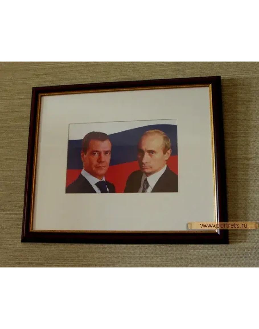 6 Портрет Дмитрия Медведева и Владимира на фоне флага