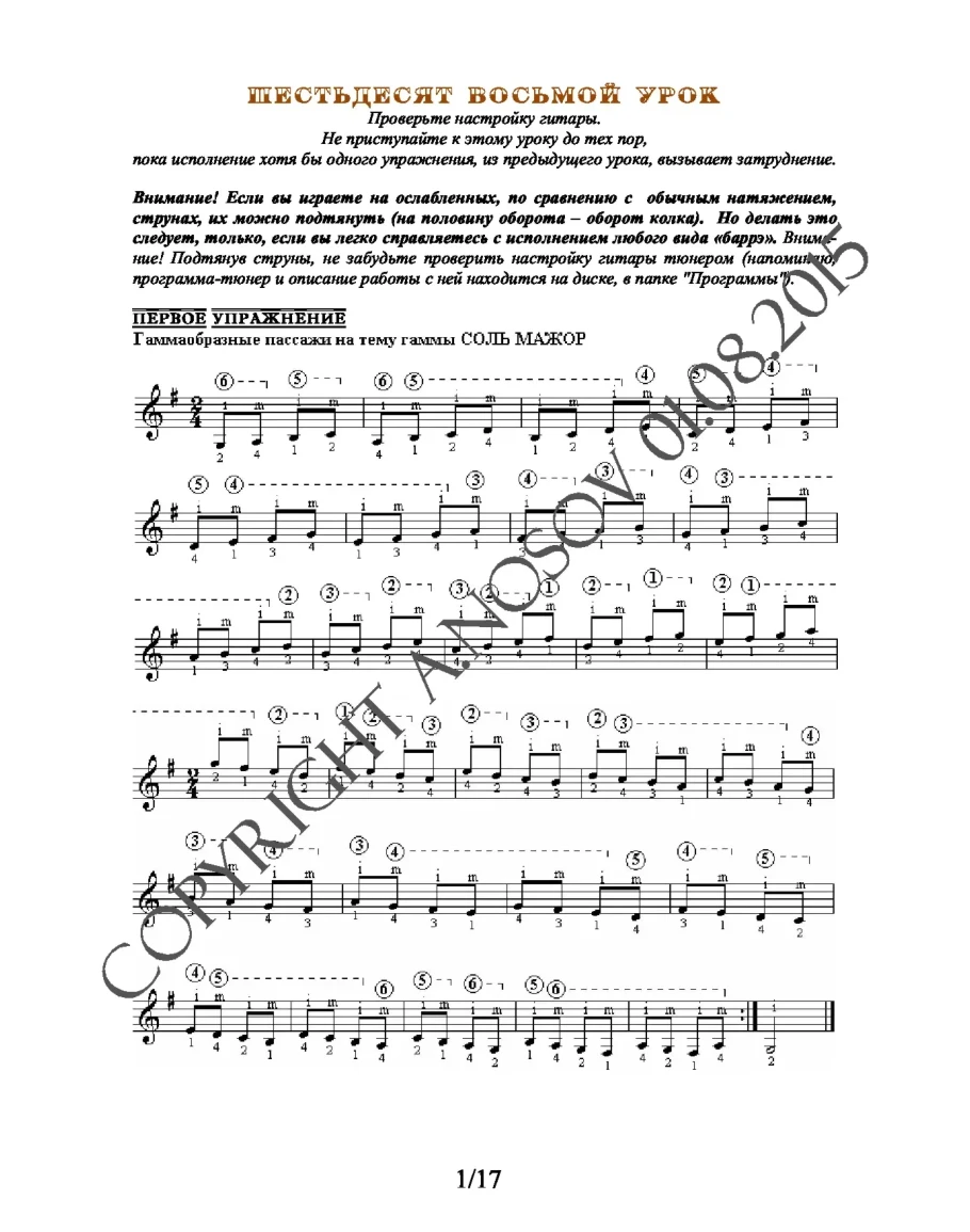 Вашему вниманию предлагается 68-й урок Гитарной Школы А.Носова, учебника, написанного в форме самоучителя и ставящего целью не только самостоятельное освоение игры на 6-й струнной гитаре от нуля и до вершин, но и изучение нотной грамоты.