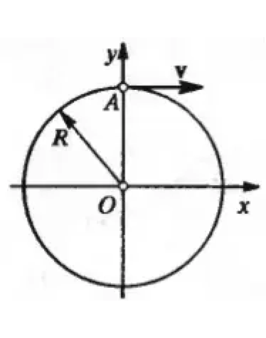 69. Точка движется равномерно со скоростью υ по окружности радиусом R и в момент времени, принятый за начальный (t=0), занимает положение, указанное на рис. 1. Написать кинематические уравнения движения точки: