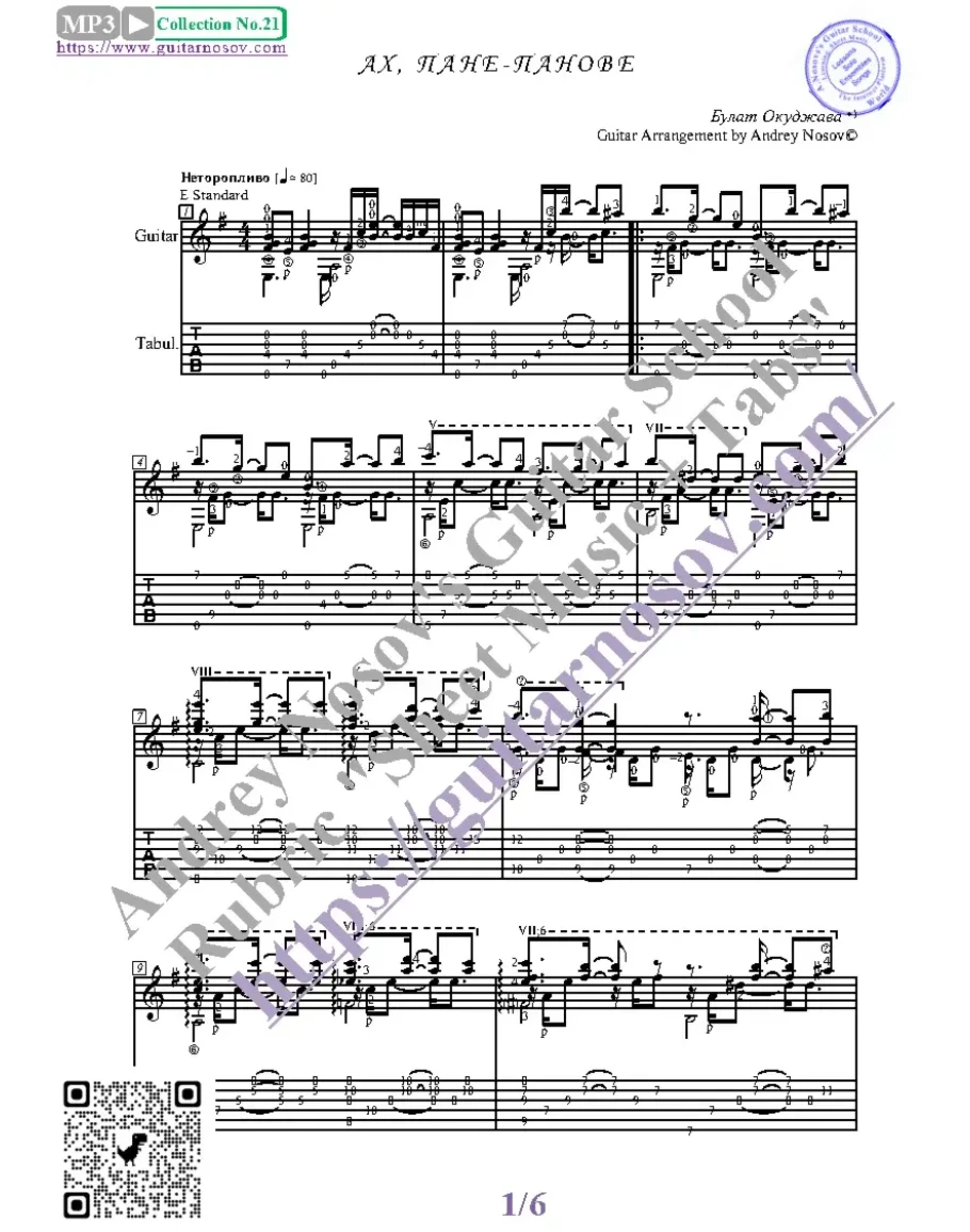 Товар состоит из двух частей (pdf / png*): 1 – Ноты с табулатурой; 2 – Ноты без табулатуры. Прилагается ссылка на скачивание mp3.