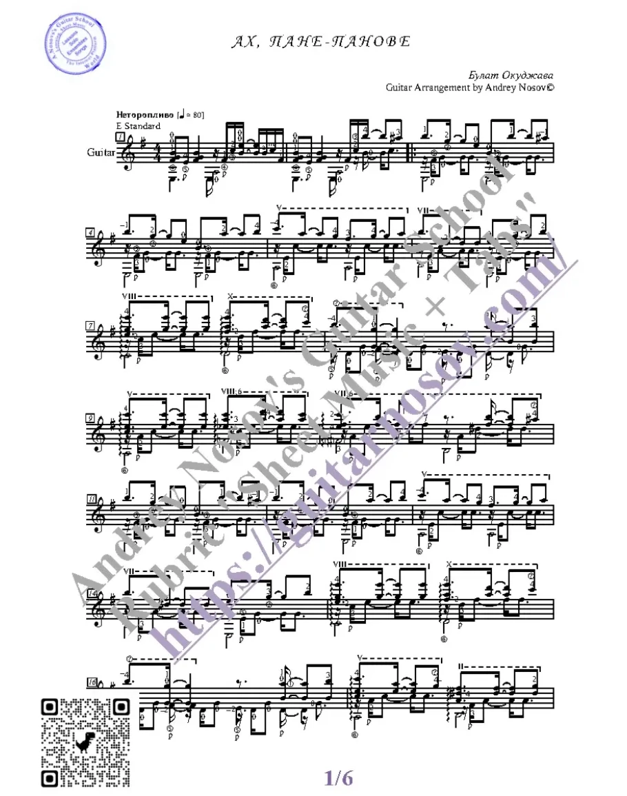 Кликните "Подробнее" для получения дополнительной информацииВашему вниманию предлагается композиция "Ах, пани, панове (Б.Окуджава)", предназначенная для исполнения на 6-ти струнной гитаре СОЛО. Запись выполнена нотами, сопровождена подробнейшей аппликатурой и продублирована табулатурой.