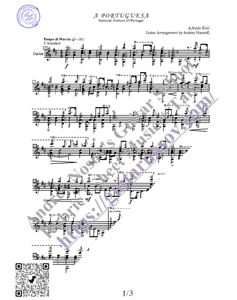 Кликните "Подробнее" для получения дополнительной информацииВашему вниманию предлагается композиция "A Portuguesa (A.Keil)", предназначенная для исполнения на 6-ти струнной гитаре СОЛО. Запись выполнена нотами, сопровождена подробнейшей аппликатурой и продублирована табулатурой.