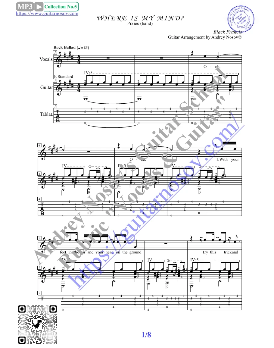 Кликните "Подробнее" для получения дополнительной информацииВашему вниманию предлагается композиция "Where Is My Mind (B.Francis)", предназначенная для вокала в сопровождении 6-ти струнной гитары (pdf / png*). Запись выполнена нотами и включает в себя партию вокала с подтекстовкой, партию гитары с подробнейшей аппликатурой, текст песни (НА АНГЛИЙСКОМ ЯЗЫКЕ). Партия гитары продублирована табулатурой. Прилагается ссылка на прослушивание / скачивание mp3.