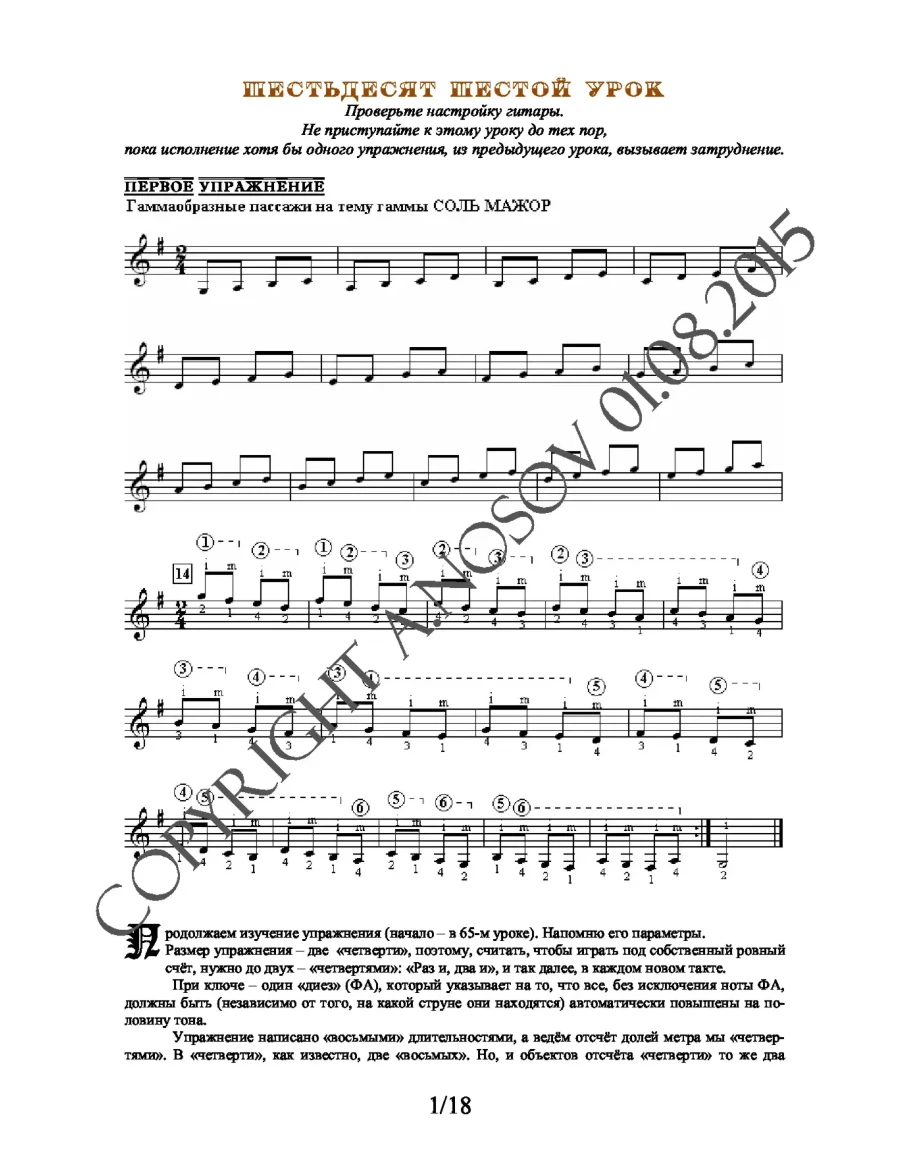 Вашему вниманию предлагается 66-й урок Гитарной Школы А.Носова, учебника, написанного в форме самоучителя и ставящего целью не только самостоятельное освоение игры на 6-й струнной гитаре от нуля и до вершин, но и изучение нотной грамоты.