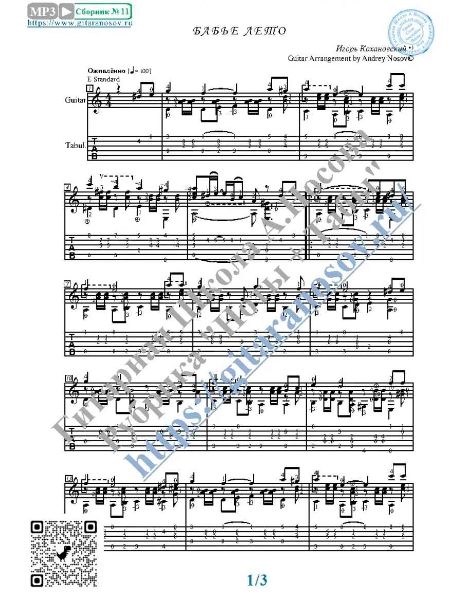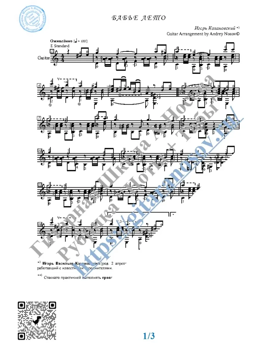 Товар включает в себя ноты с табулатурой и без табулатуры (в одном PDF). Прилагается ссылка на прослушивание / скачивание mp3.