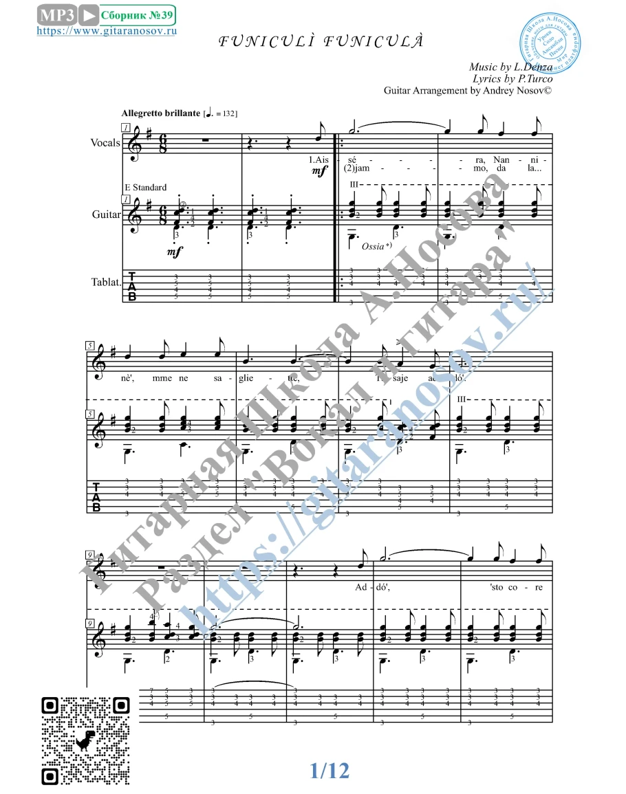 Товар состоит из двух частей: 1 – Ноты с табулатурой; 2 – Ноты без табулатуры (в одном PDF). Прилагается ссылка на прослушивание / скачивание mp3.
