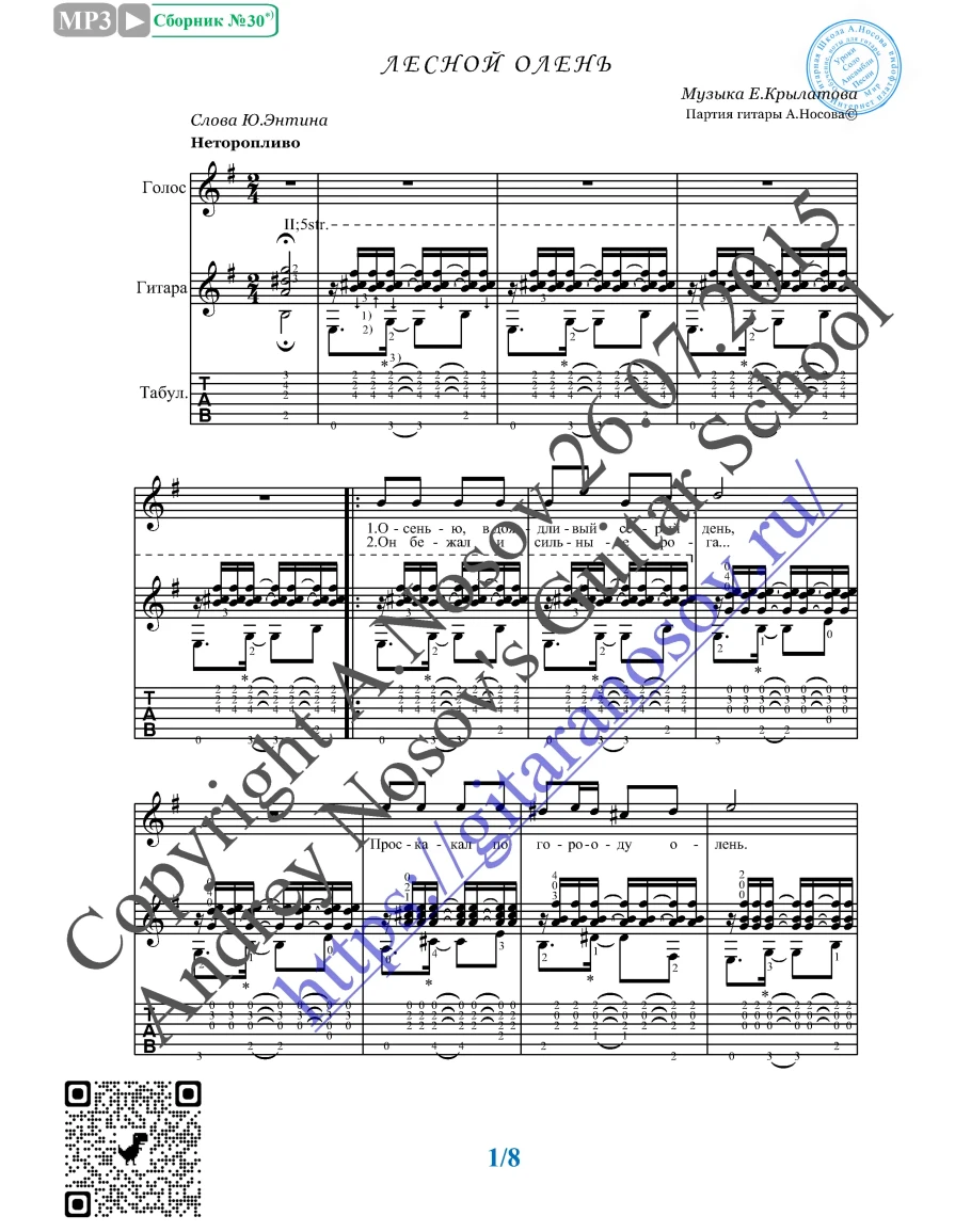 • Лесной олень (Вокал Гитара Ноты Табы)