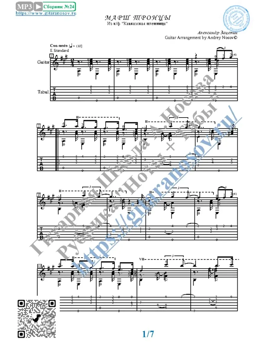 Товар включает в себя ноты с табулатурой и без табулатуры (в одном PDF). Прилагается ссылка на прослушивание / скачивание mp3.