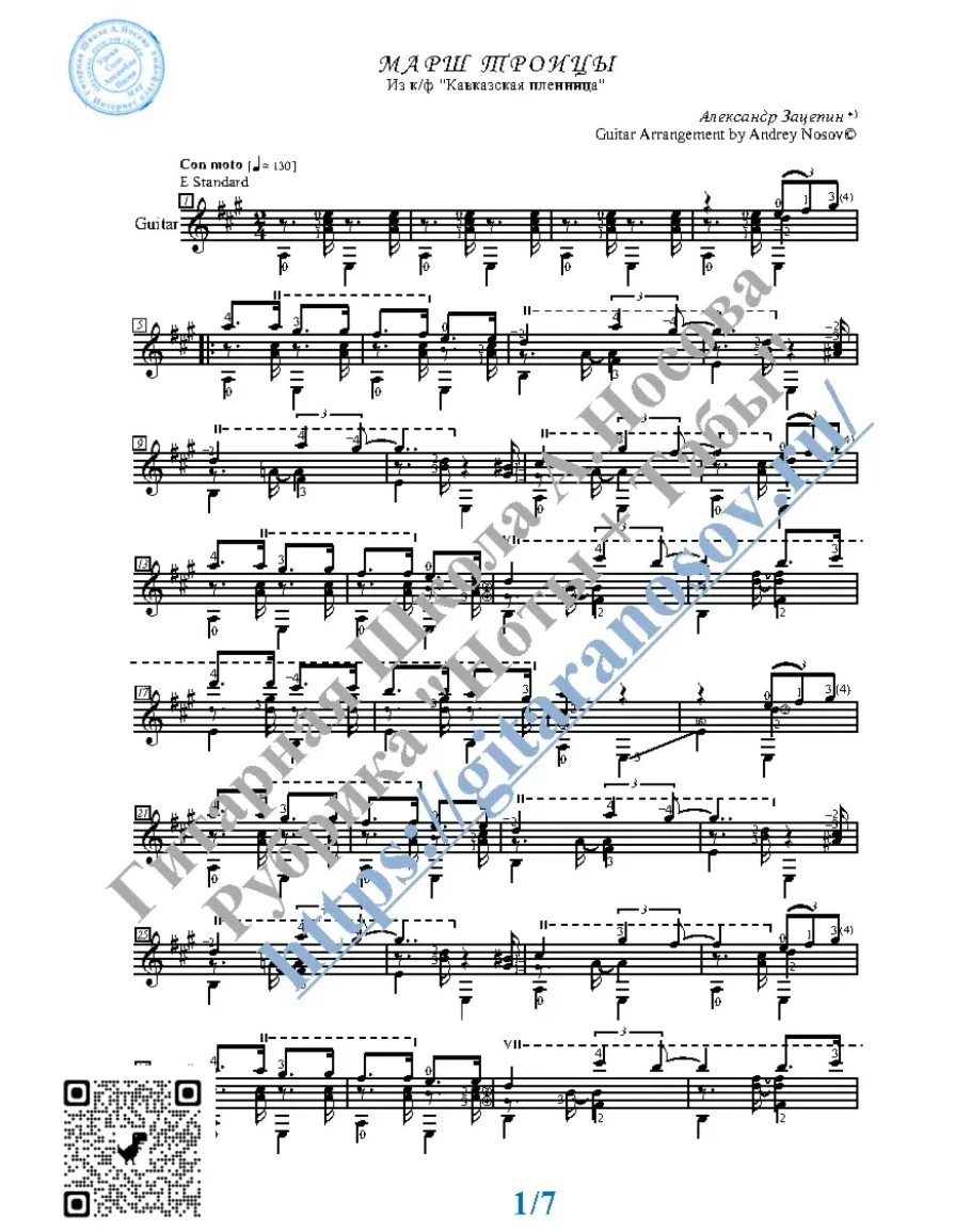 Кликните "Подробнее" для получения дополнительной информацииВашему вниманию предлагается композиция "Марш троицы из к/ф "Кавказская пленница" (А.Зацепин)", предназначенная для 6-ти струнной гитары СОЛО. Запись выполнена нотами, сопровождена подробнейшей аппликатурой и продублирована табулатурой. И ещё…