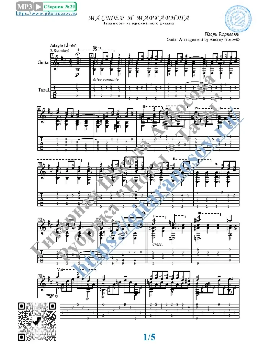Товар включает в себя ноты с табулатурой и без табулатуры (в одном PDF). Прилагается ссылка на прослушивание / скачивание mp3.