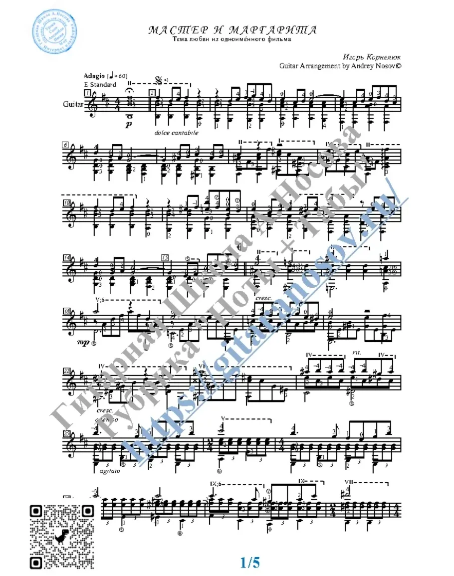 Кликните "Подробнее" для получения дополнительной информацииВашему вниманию предлагается тема любви из к/ф "Мастер и Маргарита" (И.Корнелюк), предназначенная для исполнения на 6-ти струнной гитаре СОЛО. Запись выполнена нотами, сопровождена подробнейшей аппликатурой и продублирована табулатурой. И ещё…