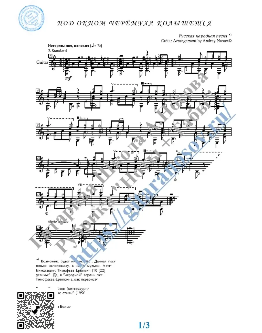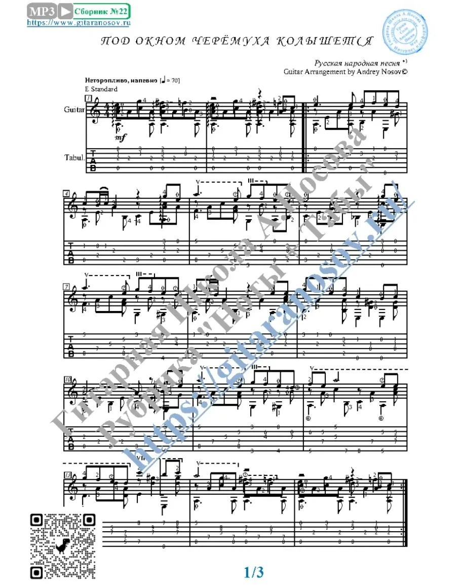 Товар включает в себя ноты с табулатурой и без табулатуры (в одном PDF). Прилагается ссылка на прослушивание / скачивание mp3.