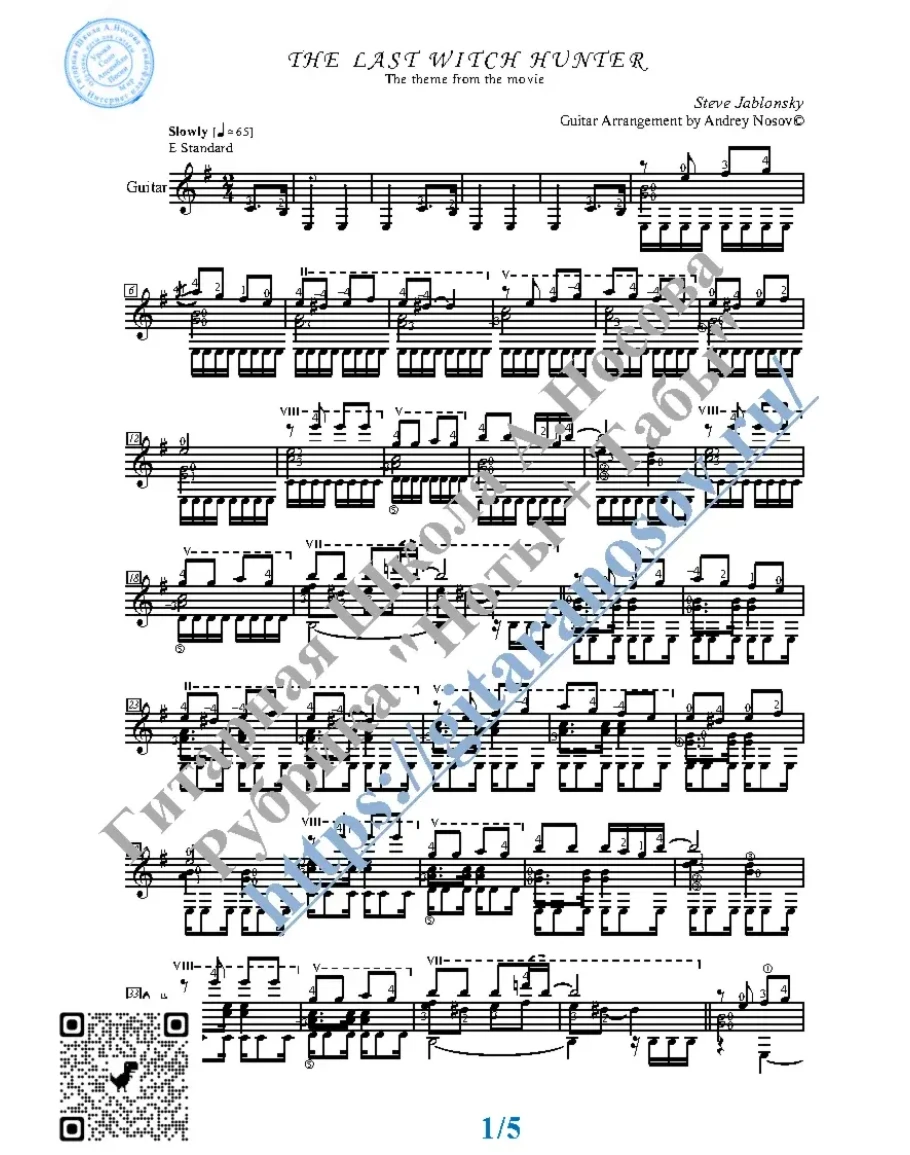 Товар включает в себя ноты с табулатурой и без табулатуры (в одном PDF). Прилагается ссылка на прослушивание / скачивание mp3.