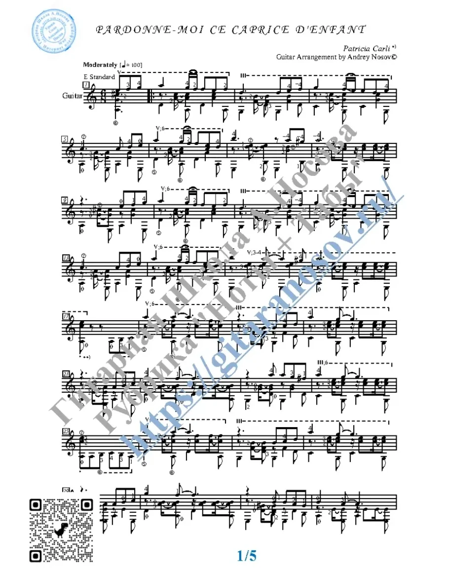 Товар включает в себя ноты с табулатурой и без табулатуры (в одном PDF). Прилагается ссылка на прослушивание / скачивание mp3.