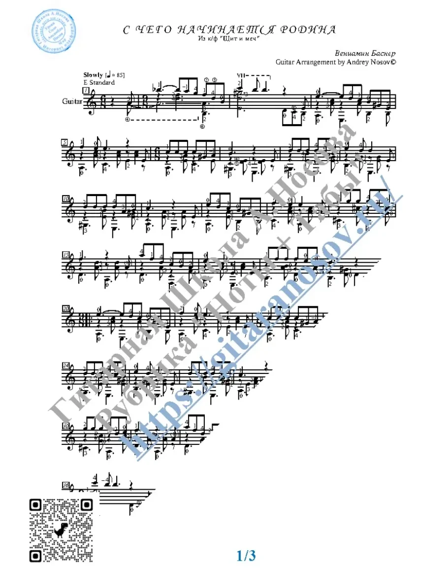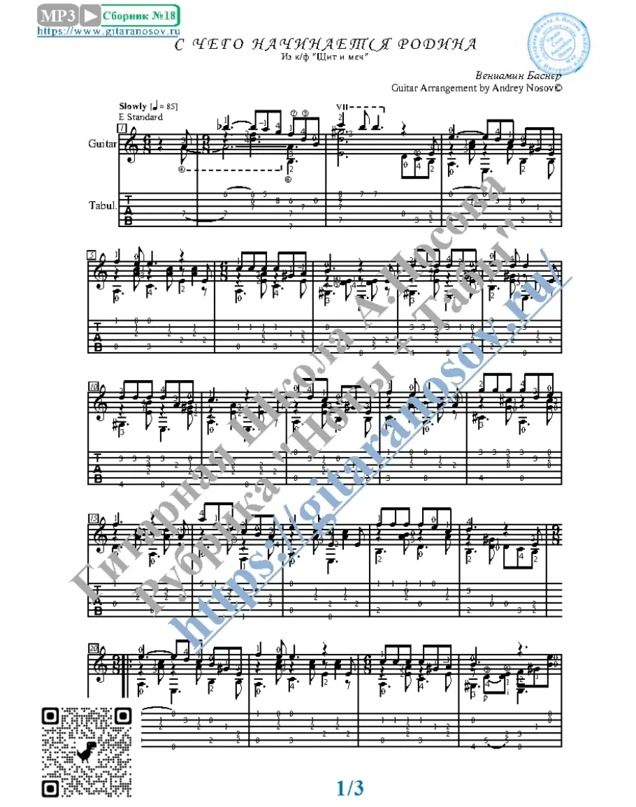 Кликните "Подробнее" для получения дополнительной информацииВашему вниманию предлагается песня "С чего начинается Родина" (В.Баснер) из к/ф "Щит и меч", предназначенная для исполнения на 6-ти струнной гитаре СОЛО. Запись выполнена нотами, сопровождена подробнейшей аппликатурой и продублирована табулатурой. И ещё…