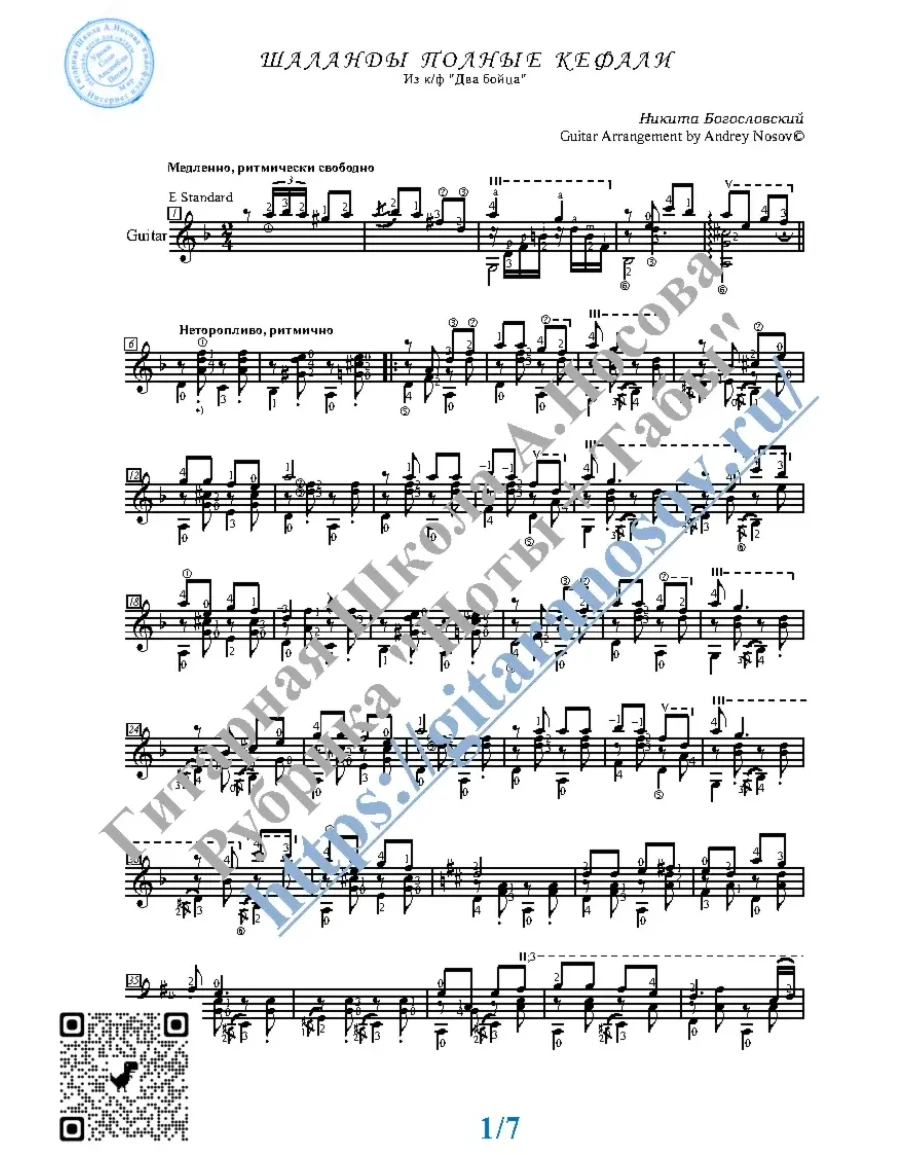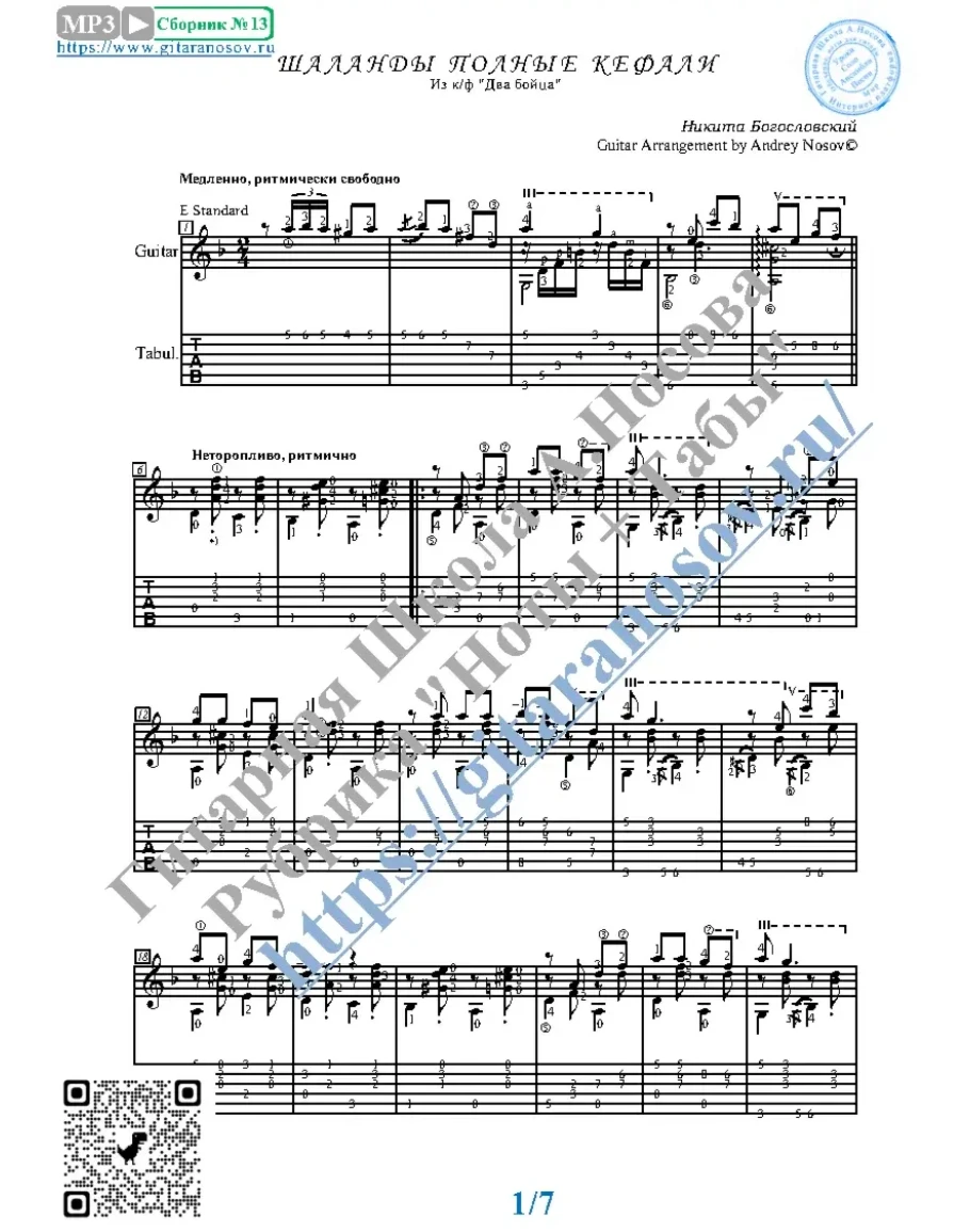 Товар включает в себя ноты с табулатурой и без табулатуры (в одном PDF). Прилагается ссылка на прослушивание / скачивание mp3.