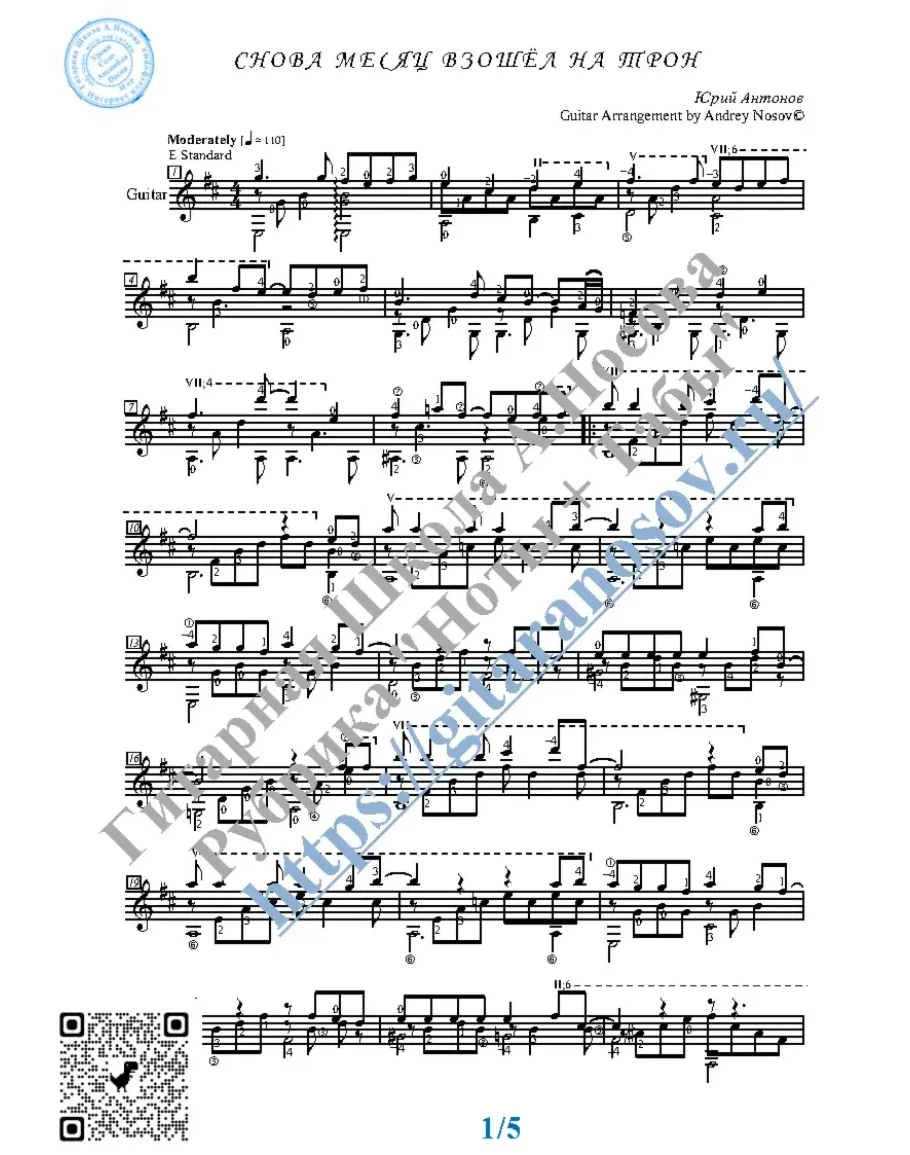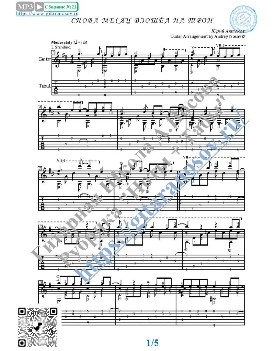 Снова месяц взошёл на трон (Ноты, табы, гитара соло)