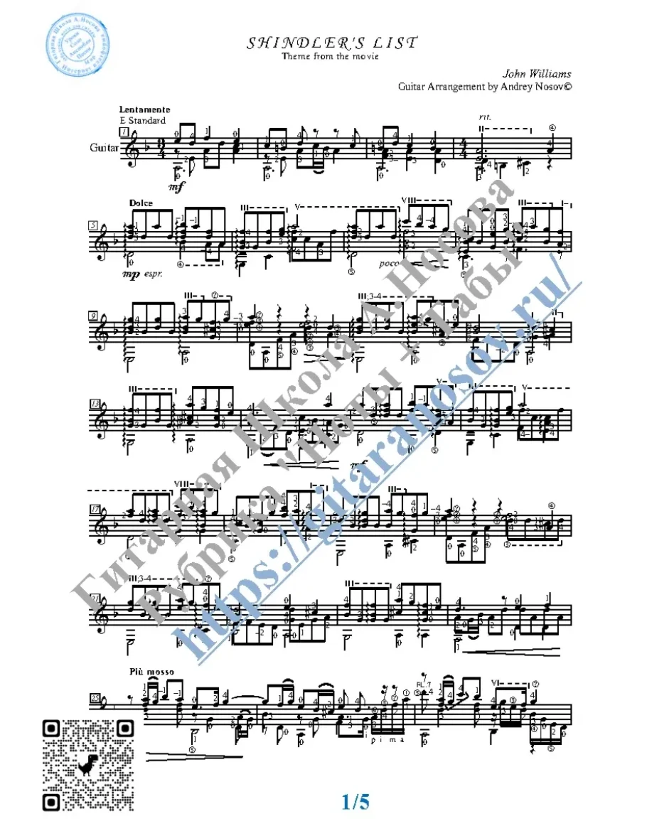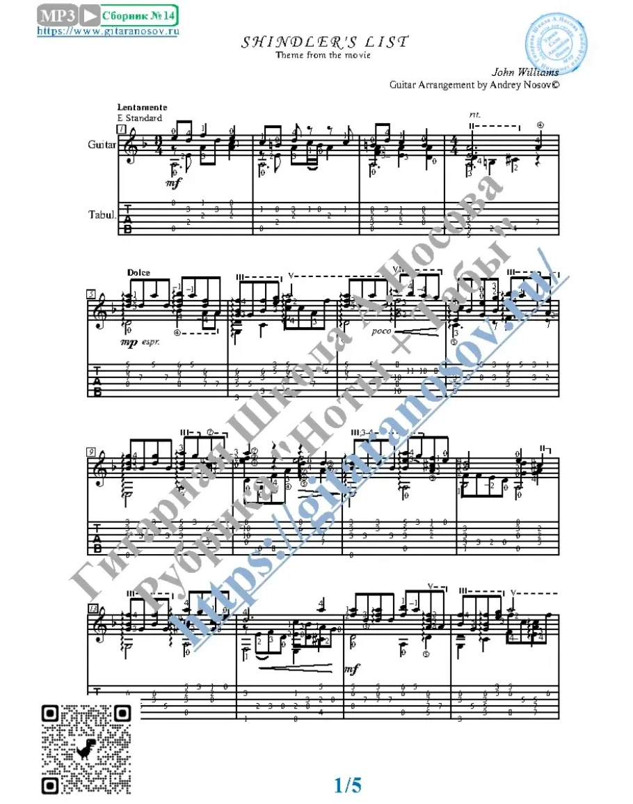 Кликните "Подробнее" для получения дополнительной информацииВашему вниманию предлагается мелодия из к/ф "Список Шиндлера" (J.Williams), предназначенная для исполнения на 6-ти струнной гитаре СОЛО. Запись выполнена нотами, сопровождена подробнейшей аппликатурой и продублирована табулатурой. И ещё…