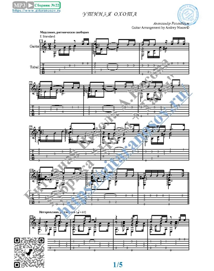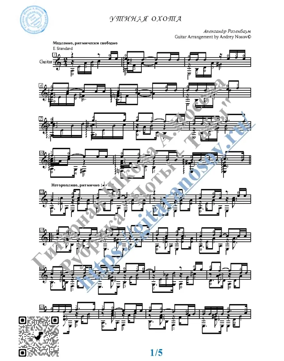 Кликните "Подробнее" для получения дополнительной информацииВашему вниманию предлагается композиция "Утиная охота (А.Розенбаум)", предназначенная для исполнения на 6-ти струнной гитаре СОЛО. Запись выполнена нотами, сопровождена подробнейшей аппликатурой и продублирована табулатурой. И ещё…
