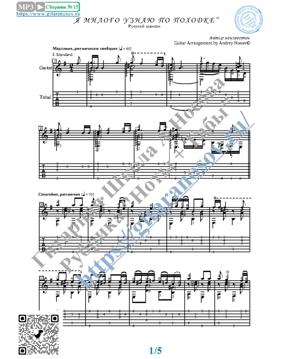 Товар включает в себя ноты с табулатурой и без табулатуры (в одном PDF). Прилагается ссылка на прослушивание / скачивание mp3.
