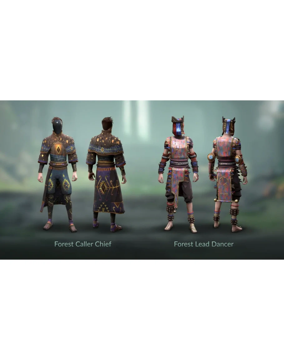The Adalian Forest Pack contains the Forest Caller Chief and Forest Lead Dancer equipment, Starnight Sword, and five new emotes