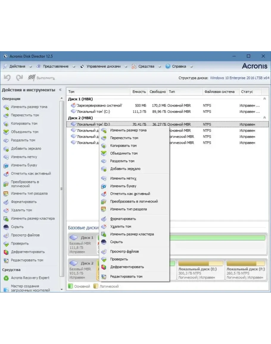 Acronis Disk Director 12 - это набор мощных инструментов для оптимизации использования дисковых ресурсов и защиты данных. С его помощью можно создавать разделы дисков и управлять ими, чтобы хранить различные файловые или операционные системы на одном диске, быстро восстанавливать потерянные или удаленные данные, сокращать время создания резервных копий образов и работы средств диагностики, а также улучшать общую производительность компьютера.