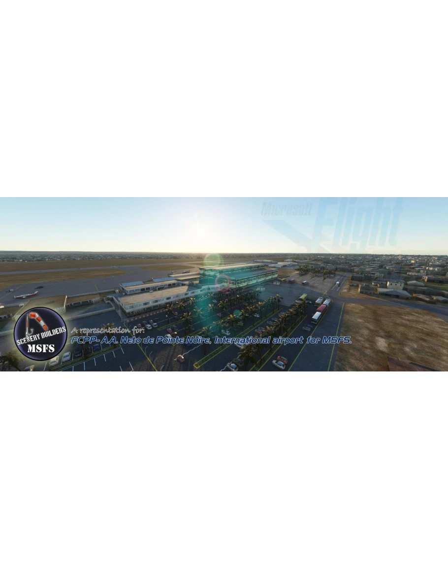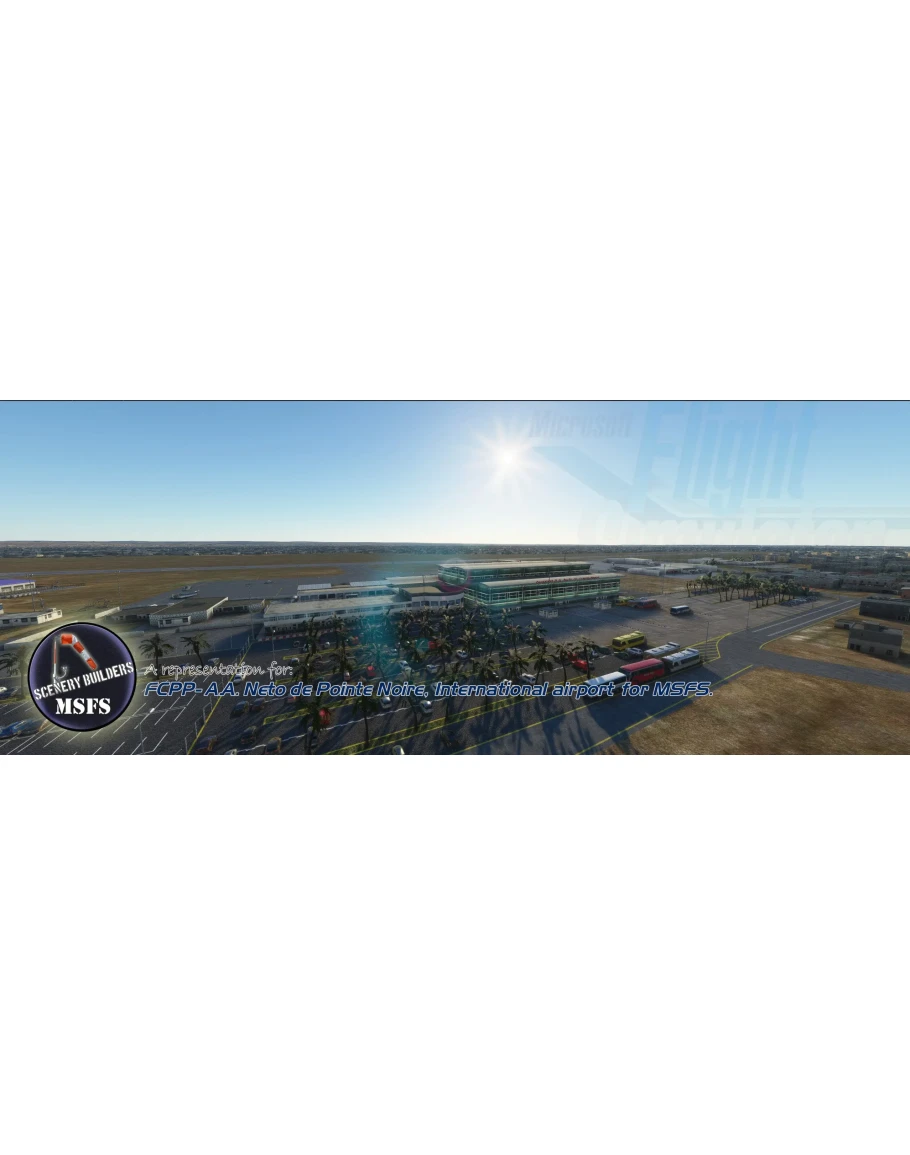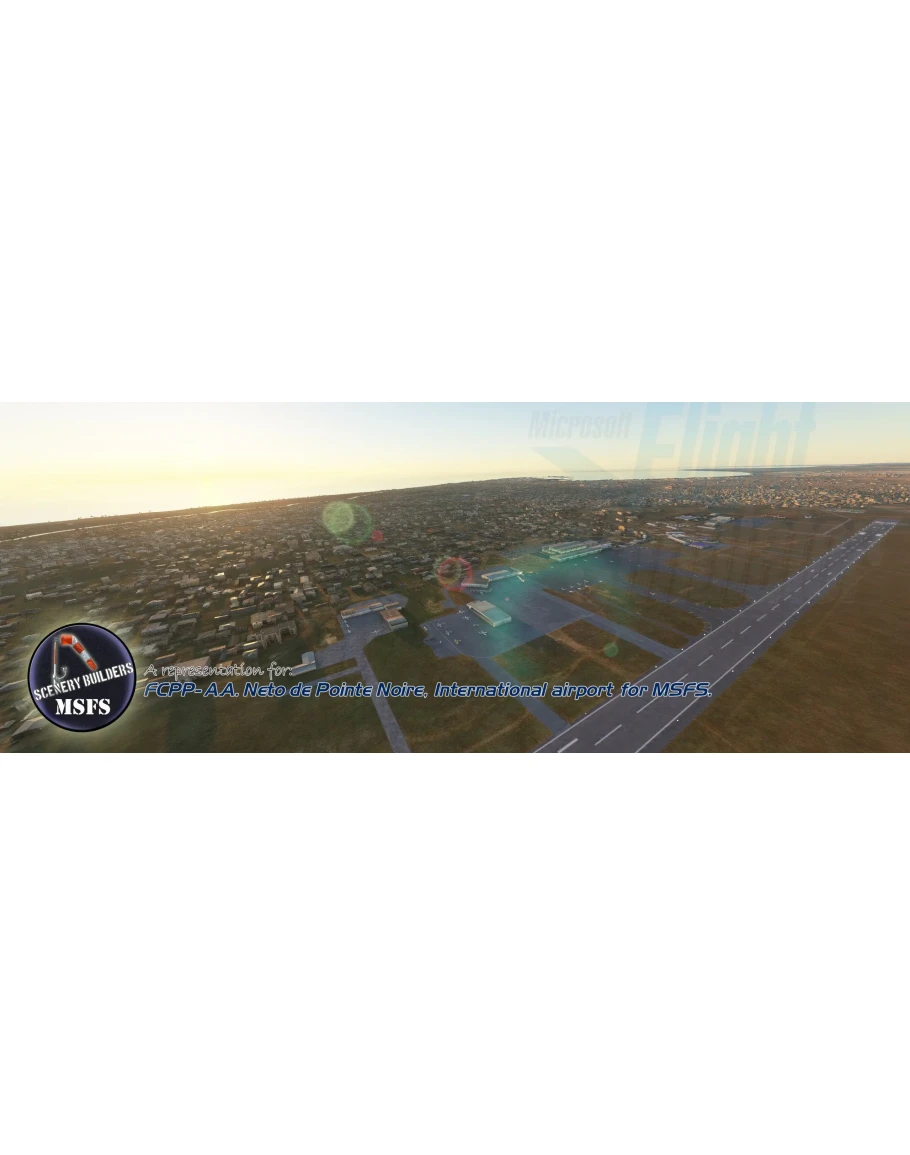 Детально проработанный международный аэропорт Антонио-Агостиньо-Нето в Пуэнт-Нуаре, Республика Конго. Этот сценарий воссоздает оживленный прибрежный аэропорт с его уникальным расположением всего в 3 км от Атлантического океана.