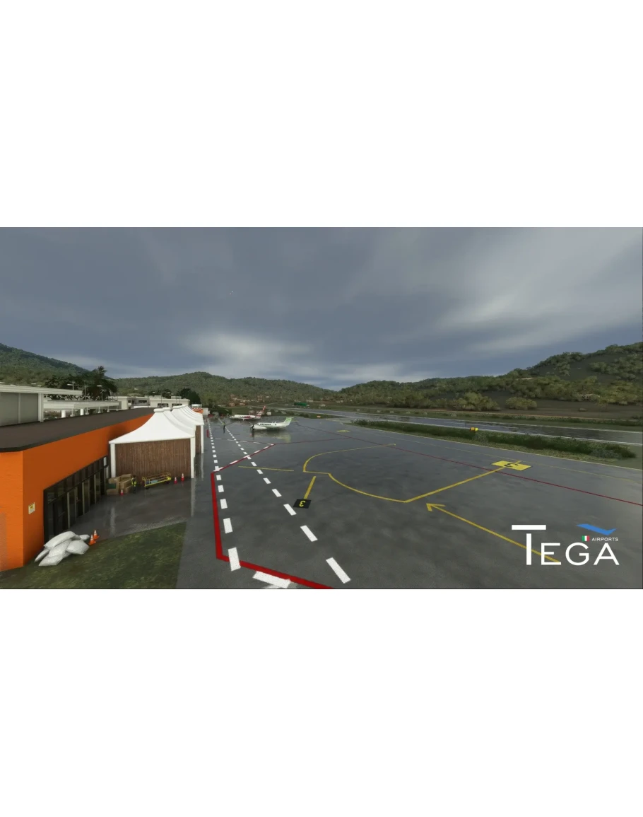 Детально воссозданный аэропорт Марина-ди-Кампо - единственные воздушные ворота острова Эльба в Тоскане, Италия. Этот современный аэропорт включает взлетно-посадочную полосу длиной 1,2 км и два просторных перрона, обновленных по состоянию на 2022 год.