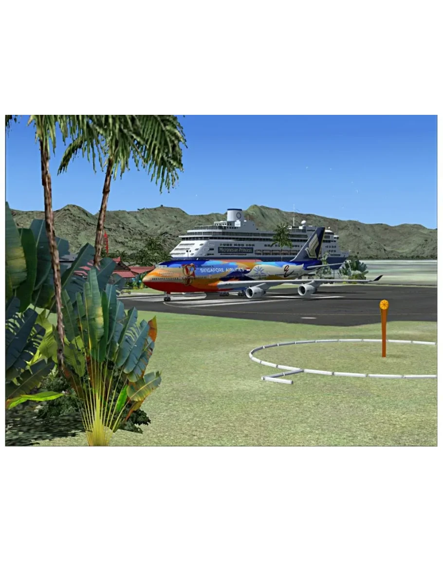 Детально проработанный международный аэропорт Косрае, расположенный на живописном острове в Федеративных Штатах Микронезии. Этот аэропорт является важным транзитным пунктом между Гавайями и Гуамом, обслуживающим регулярные рейсы Continental Micronesia.