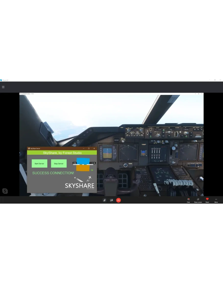 SkyShare - это инновационное решение для совместного управления кабиной в Microsoft Flight Simulator. Программа позволяет подключиться к партнеру и взять на себя управление самолетом в режиме реального времени. Благодаря передовой технологии TCP-сервера обеспечивается минимальная задержка при управлении даже на больших расстояниях.