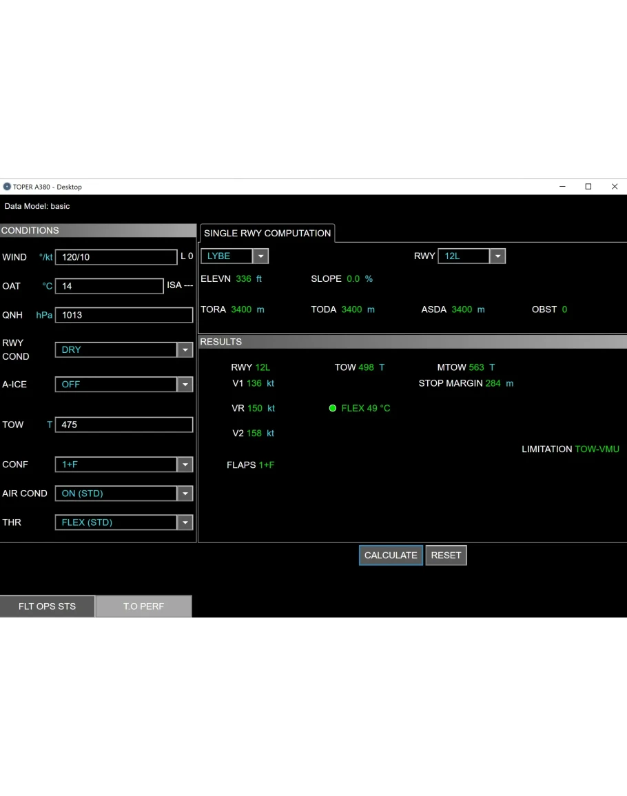 Профессиональный калькулятор взлетных характеристик для Airbus A380. Основан на реальных летных данных и обеспечивает точный расчет всех необходимых параметров взлета.
