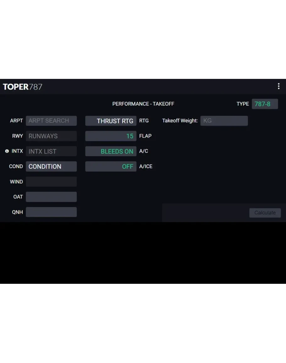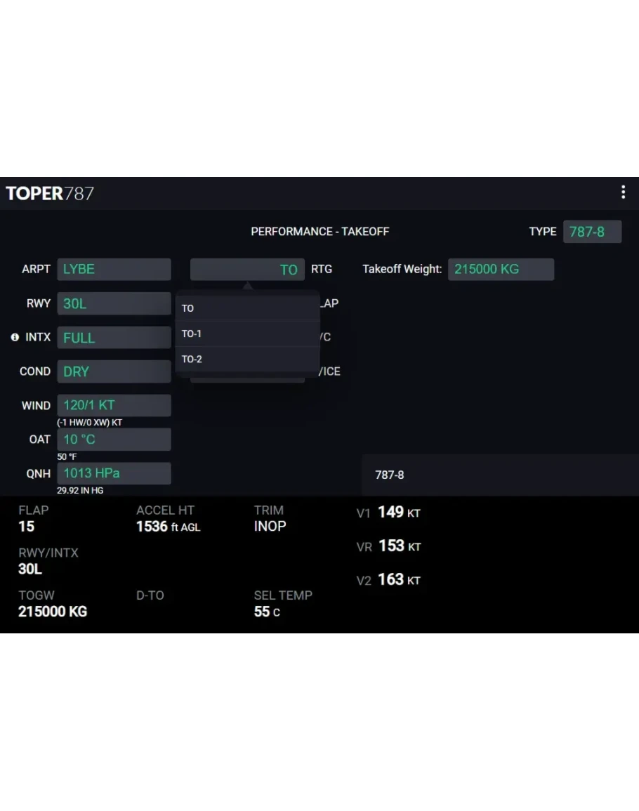 ✈️ TOPER - B787 Dreamliner Performance Calculator | Профессиональный калькулятор взлетных характеристик