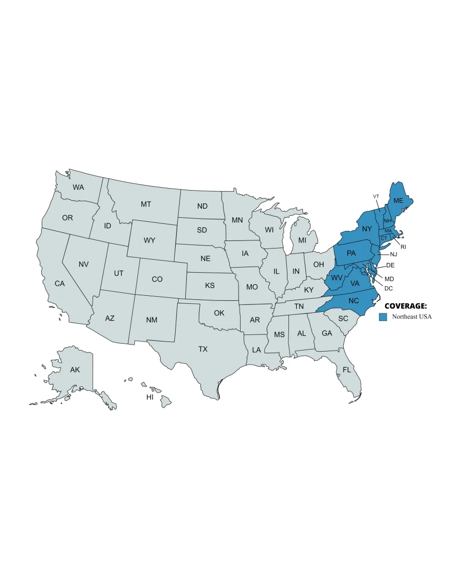 • Полное покрытие 14 штатов северо-востока США