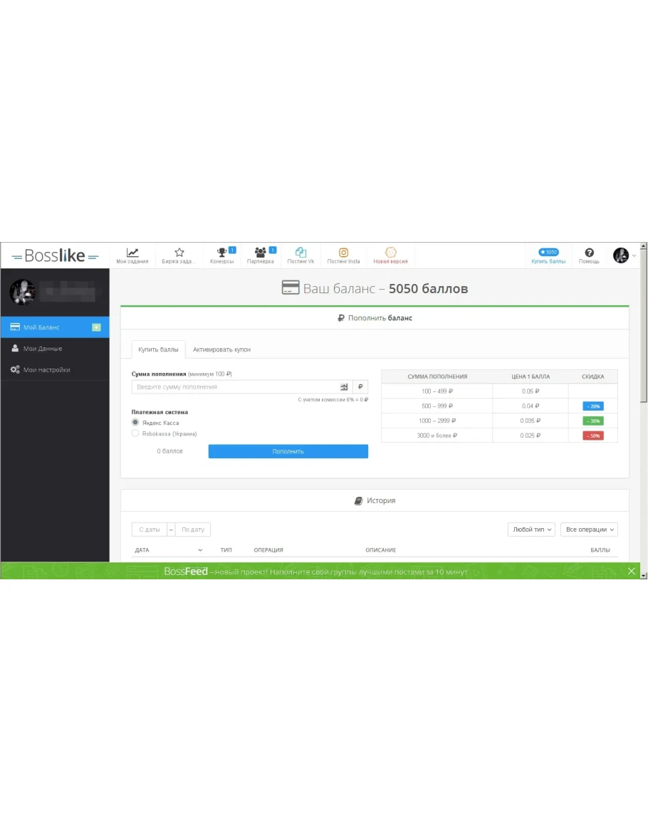 Аккаунты БоссЛайк. 1/3/5/10/15/20 K баллов BossLike