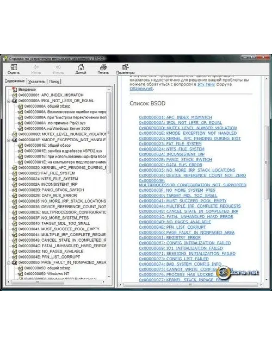Справочник по сообщениям синего экрана смерти и устранению появления BSOD
