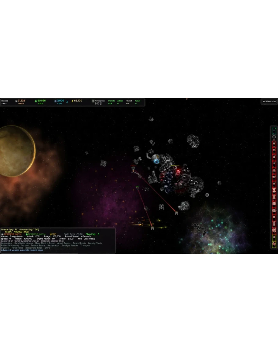 Есть несколько обстоятельств, играющих вам на руку. Ваши корабли намного быстрее. У вас есть безопасные программы с искусственным интеллектом для автоматизации защиты и возведения оборонных позиций. У вас есть оборудование, которое может сбить полностью оснащенные беспилотные истребители в считанные секунды. И пусть по количеству ваши несколько тысяч кораблей не сравнятся с их десятками тысяч, но благодаря тщательной стратегии вы должны любыми способами достичь и уничтожить надежно охраняемые ядра Искусственного Интеллекта.