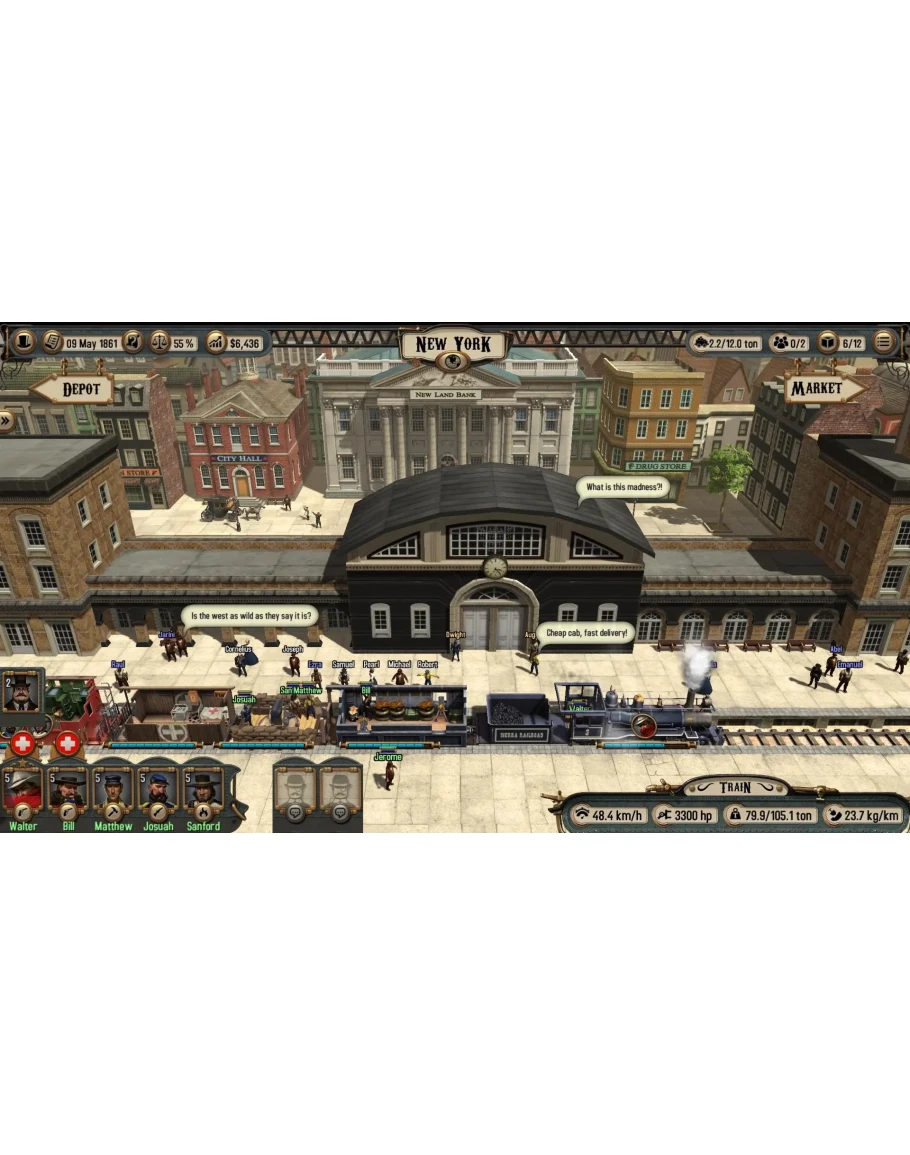 Приготовьтесь завоевать Дикий Запад на рельсах! Спроектируйте и создайте свой собственный поезд, оснастите его разнообразным и детализированным оборудованием, наймите верную, отважную и преданную команду и отправляйтесь путешествовать по опасному Дикому Западу. Преодолевайте трудности, расчетливо распоряжаясь ресурсами, и занимайтесь товарными и пассажирскими перевозками. Решайте проблемы по-своему: с помощью дипломатии, насилия или взяток.