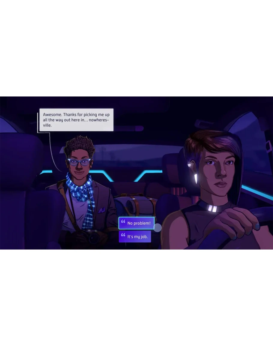 Приложение Neo Cab помогает выбирать пассажиров и показывает дорогу. Общайтесь с клиентами, пока вы едете по маршруту. Заботьтесь о своем рейтинге, чтобы не вылететь с работы. Учитесь не поступаться своими чувствами ради денег или из желания угодить другим. И постарайтесь решить, что важнее: ваше душевное здоровье или звездный рейтинг?