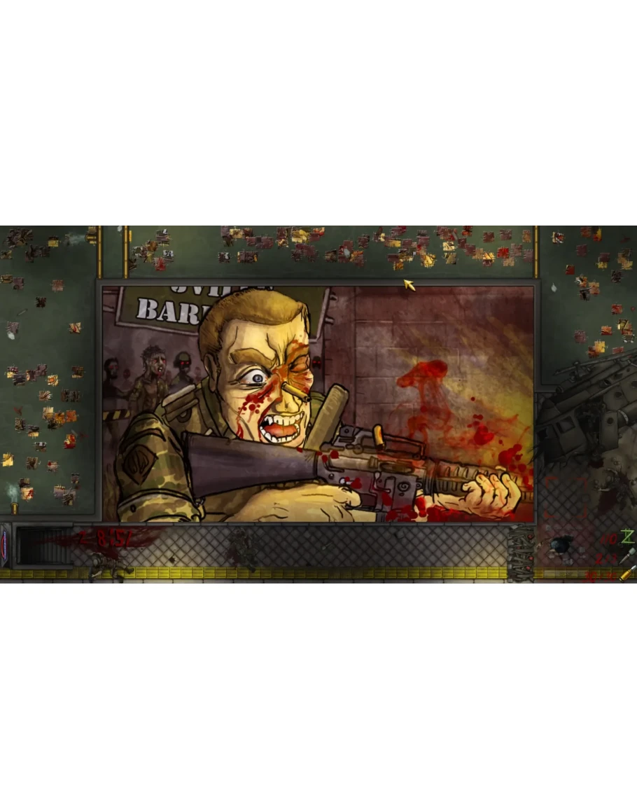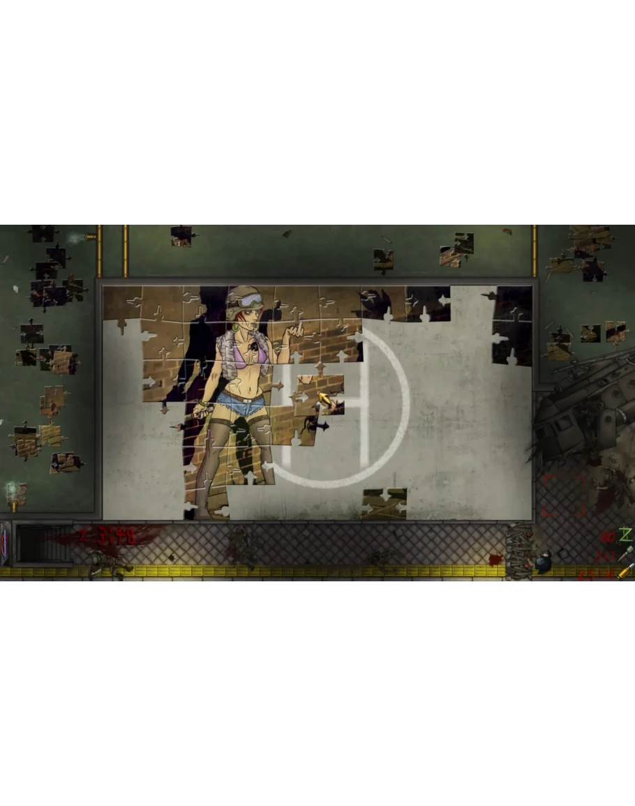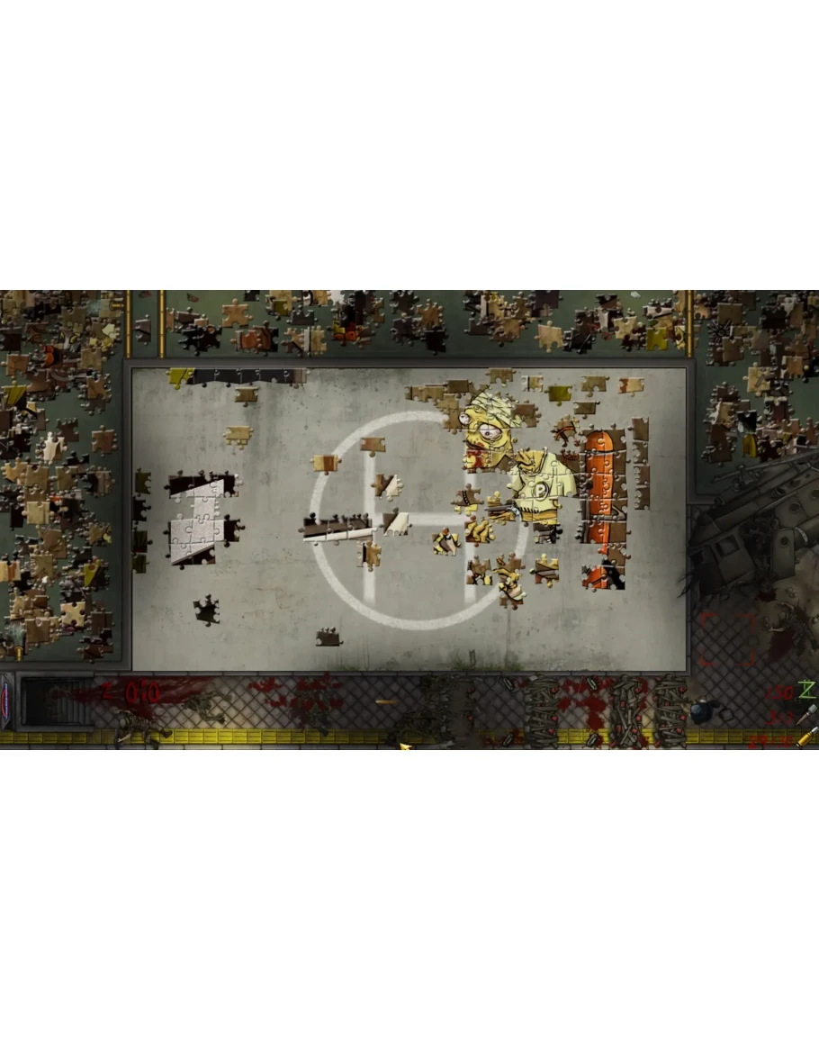 Визуально это выглядит так: вверху экрана осуществляется сборка изображения из пазлов, а в нижней — бравый герой-одиночка противостоит армии зомби с помощью винтовки, баррикад, мин и ловушек.