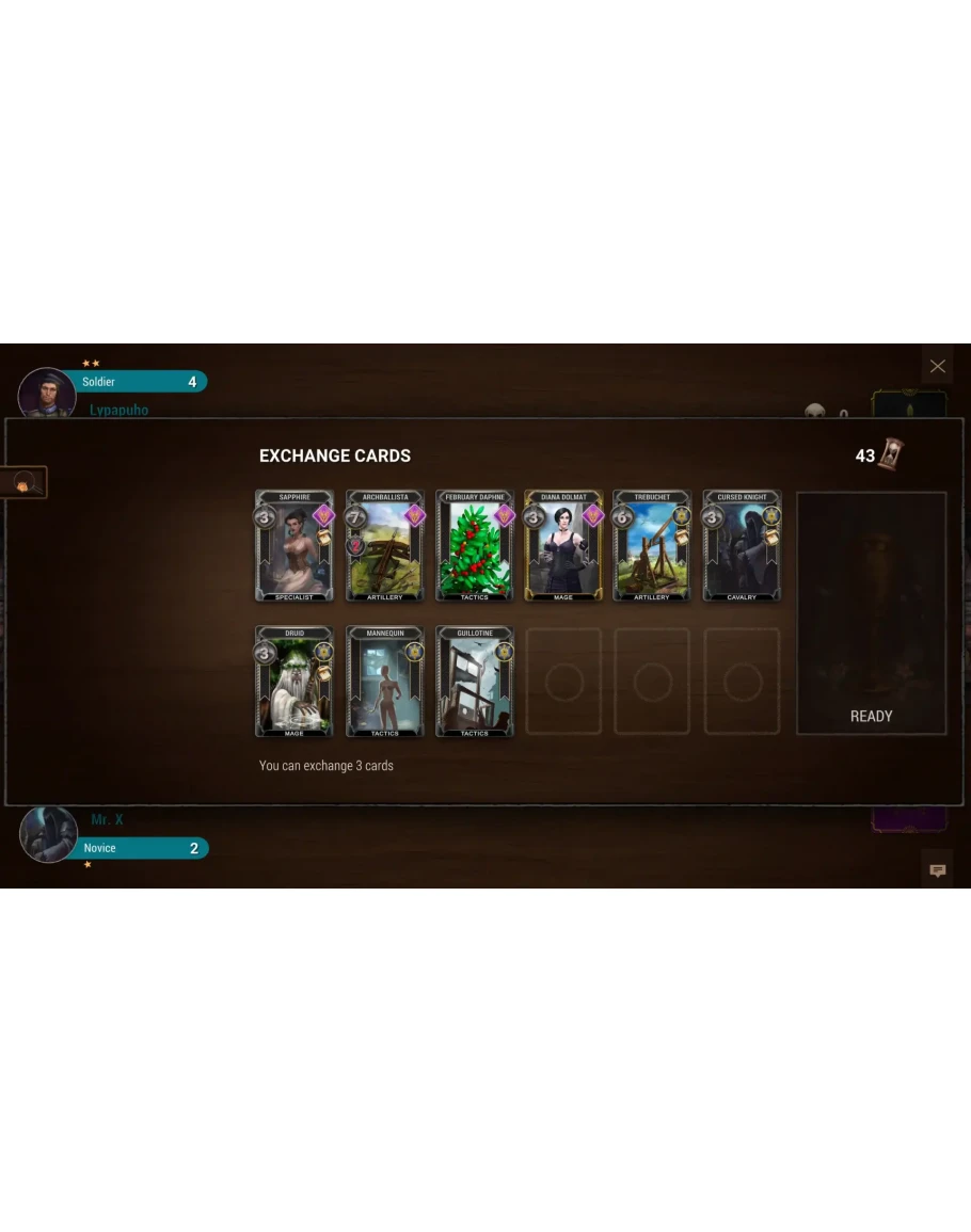 The Art of War: Card Game — это неколлекционная карточная игра, в которой вы можете возглавить одну из четырех фракций и побороться за господство в ожесточенных карточных баталиях против других игроков со всего света. Эта игра представляет собой цифровую версию нашей настольной игры с некоторыми ограничениями. В цифровой версии матчи ограничены двумя игроками (вместо 4 в настольной версии) и доступен лишь режим «противостояние». С другой стороны, цифровая версия игры обеспечивает быстрый и простой поиск противников, систему рейтинга и одиночный режим, в котором игрок может сражаться с ИИ без напарника-человека. Все остальные аспекты игры эквивалентны в обеих версиях игры.