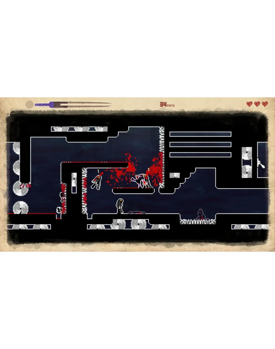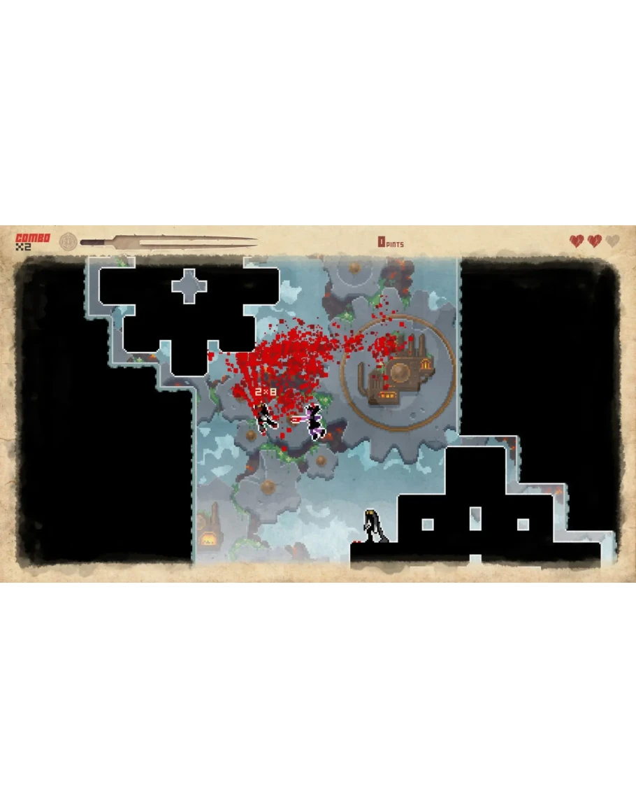 They Bleed Pixels — это дьявольски сложный экшн-платформер, вдохновленный произведениями Г.Ф. Лавкрафта и другими классиками в жанре ужаса. Визуально игра представлена в особом стиле, сочетающим пиксель арт и рисунки чернилами, а геймплей состоит из уникальной смеси напряжённого платформера и жестокого «побей-их-всех» («beat-em-up») экшена. В основе боевой системы лежит простая однокнопочная схема, поражающая своей глубиной и разнообразием. Совершая стильные убийства, уникальная система контрольных точек будет награждать вас точками сохранений, которые можно расставлять по своему усмотрению. Поэтому здесь не приветствуется просто бить монстров, давя на кнопки, а лучше толкать их на циркулярные пилы, шипы и в пропасти, ведь чем более изощрены ваши убийства, тем быстрее накапливается шкала чекпоинта.