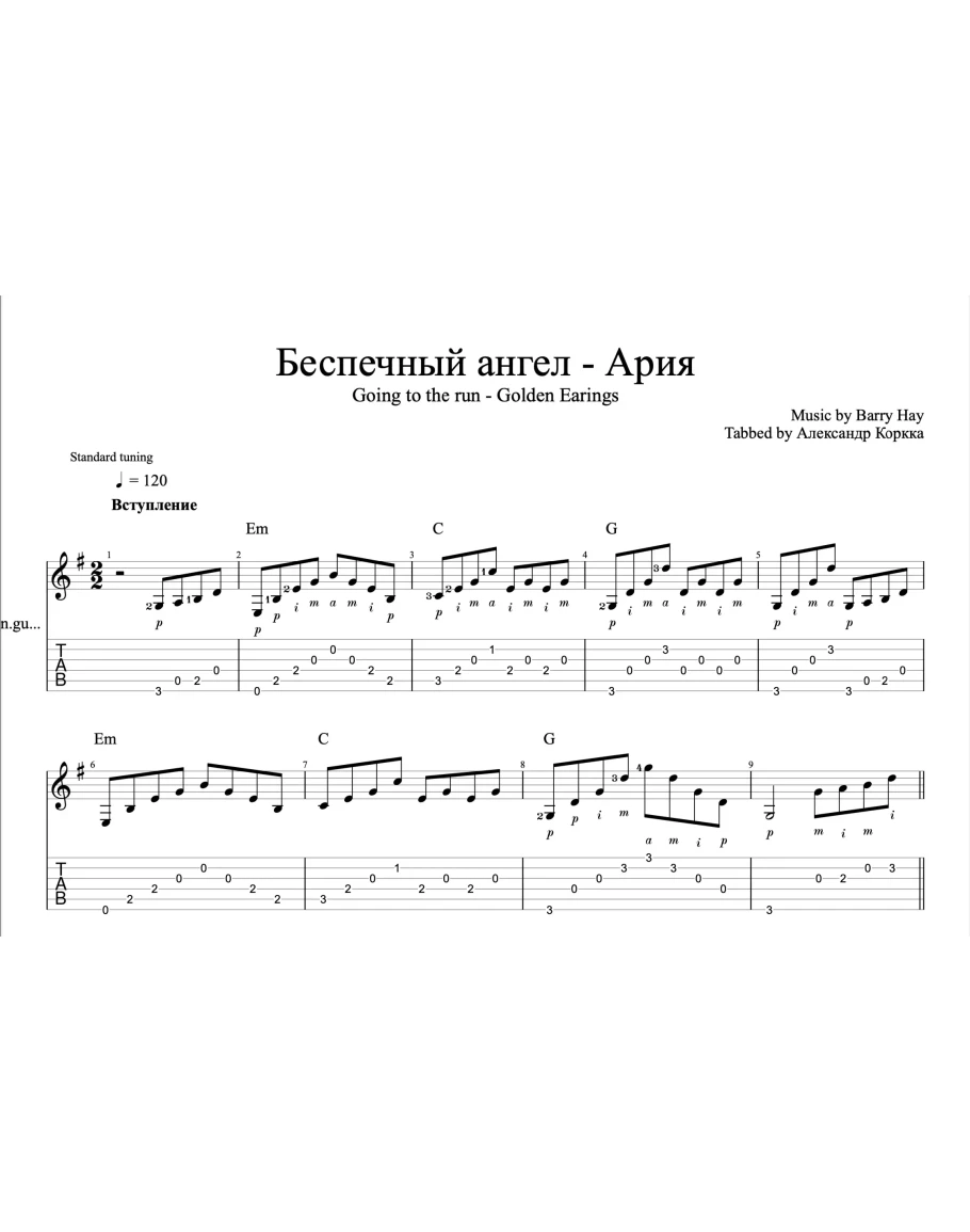 Авторская аранжировка для гитары соло.