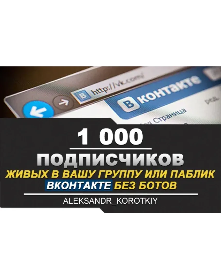 Добавлю 1000 подписчиков ВКонтакте в группу или паблик без ботов!